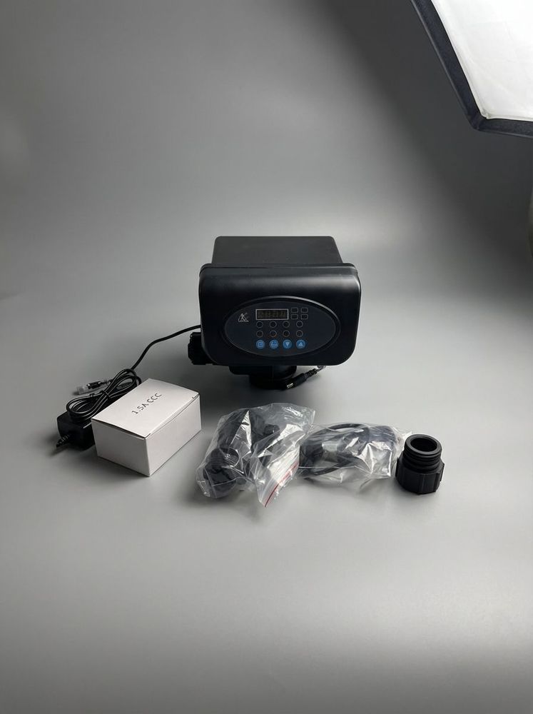Este cabezal (válvula de control) es el componente crítico para cualquier sistema ablandador de agua. Su función principal es gestionar automáticamente los ciclos de regeneración de la resina catiónica, proceso vital para eliminar la dureza (sarro) del agua de manera continua. A través de su pantalla digital, puedes programar la frecuencia de los lavados según el uso. El equipo se encarga por sí solo de realizar los 5 pasos del ciclo: servicio, retrolavado, succión de salmuera (sal), enjuague lento y llenado del tanque de salmuera. Es compatible con tanques de fibra de vidrio (FRP) estándar y garantiza que tu sistema recupere su capacidad de intercambio iónico sin intervención manual constante.